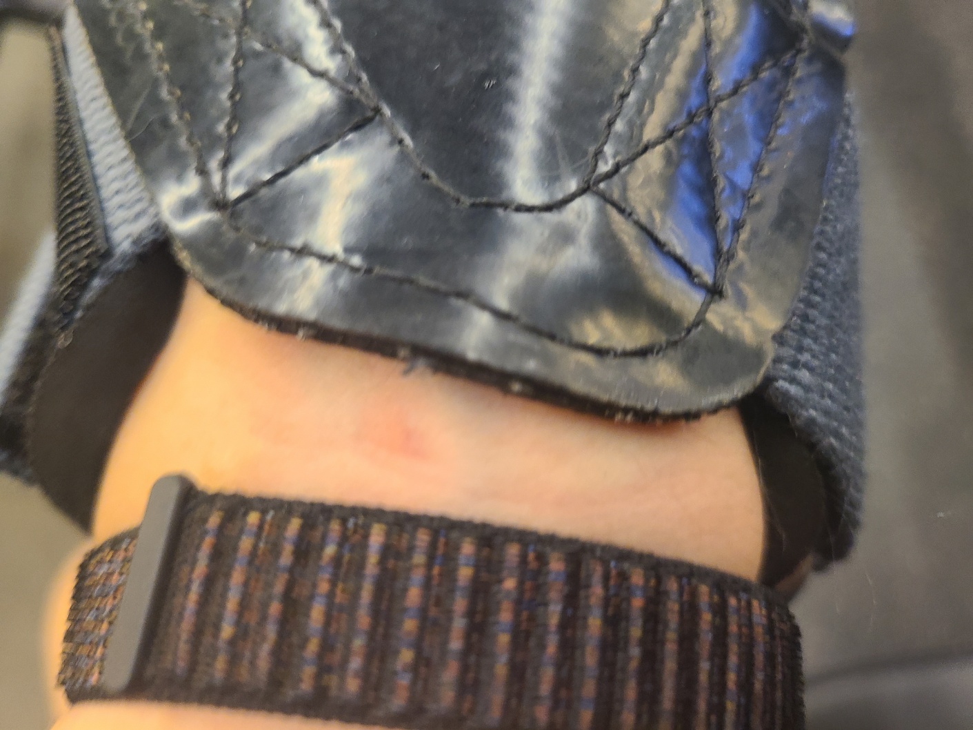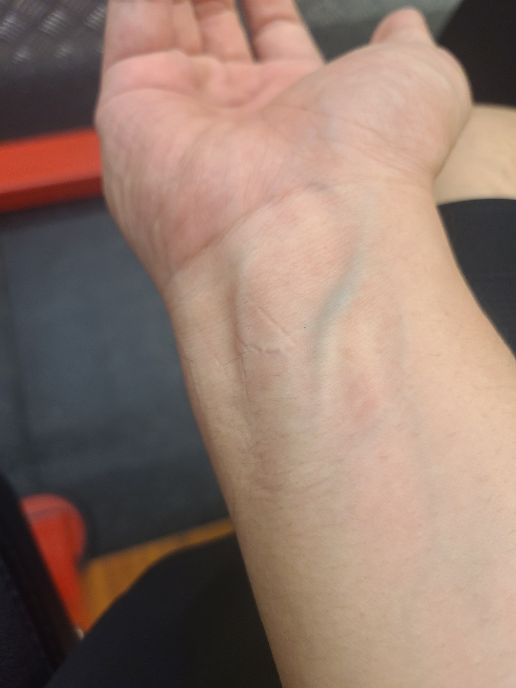 운동을 하다보니 손목쪽이 계속 찍힙니다.