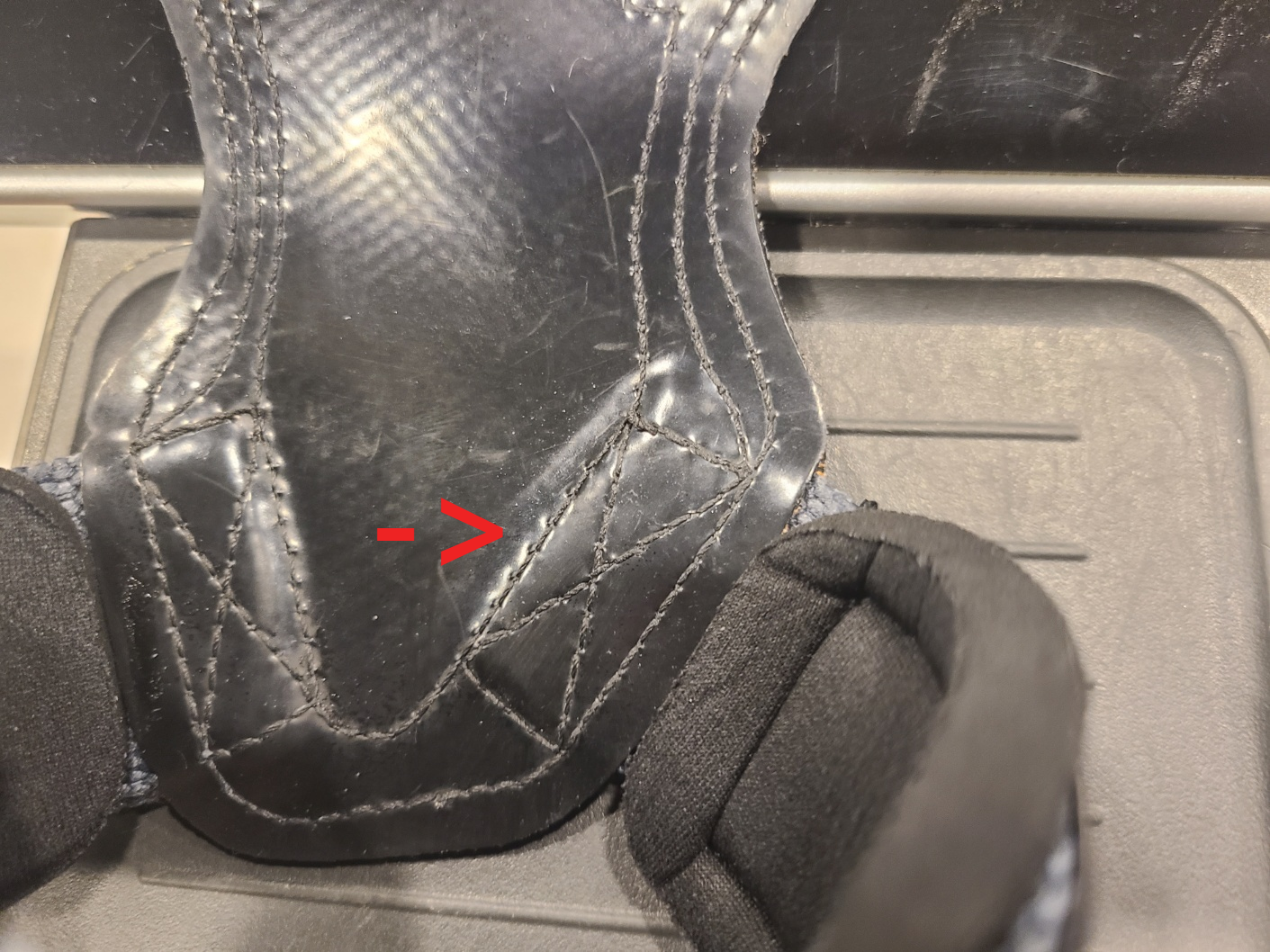 바로 왼손 엄지 손가락 아랫부분이 그립의 봉제 부분에 눌려서 통증이 생긴다는 점입니다.