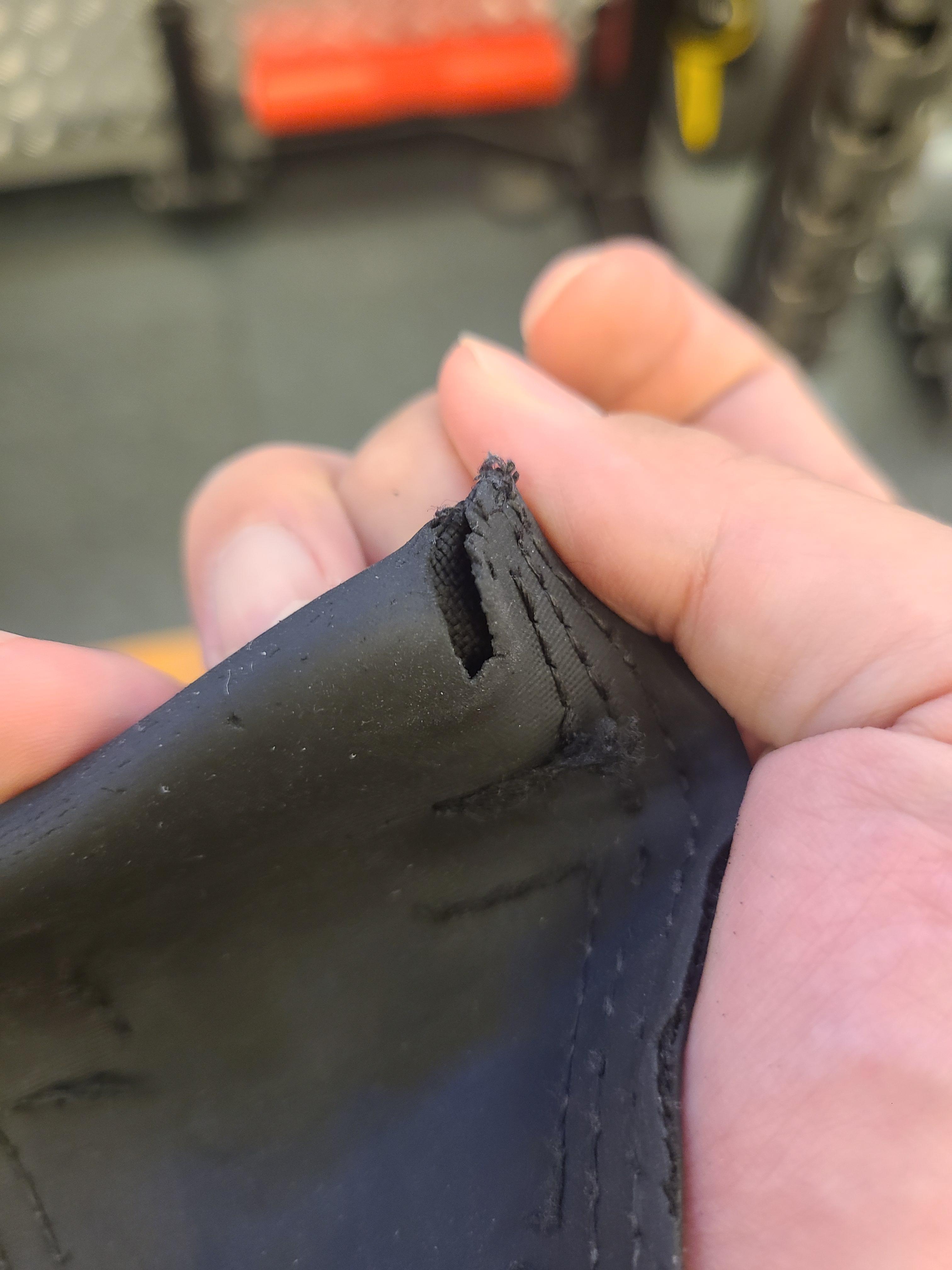 가장 먼져 느꼈던건 그립 자체가 흐물흐물해져서, 미는 운동을 하다가 당기는 운동을 하려고 보니 그립이 손바닥쪽으로 말려서 펴지지가 않더군요. 운동에 따라 흐물흐물한 그립때문에 손에 감는것이 불편해지는 경우가 생겼습니다.