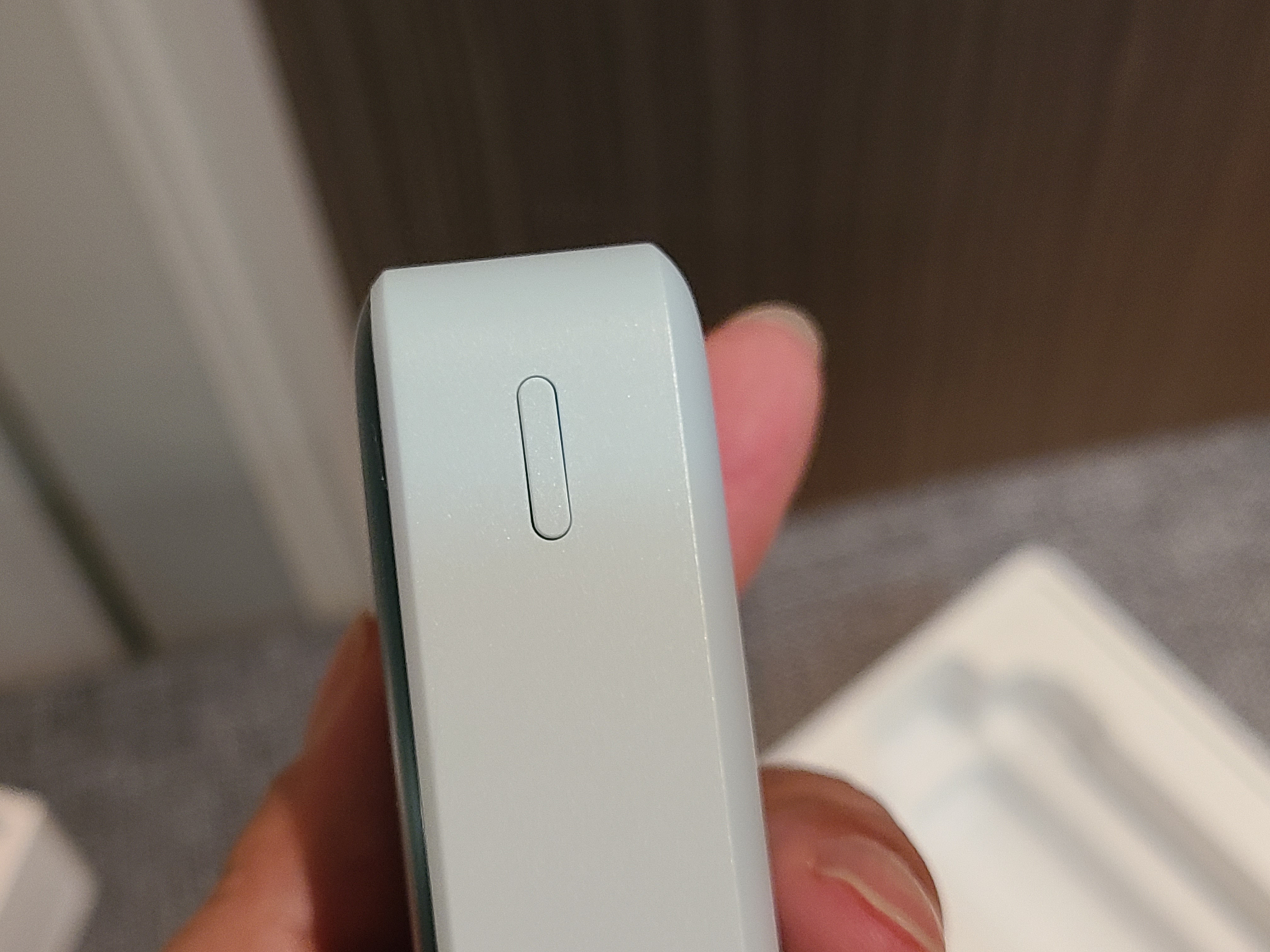 에어팟처럼 저전력으로 충전을 권장하는 제품의 경우 보조배터리 측면 버튼을 짧게 두번 누르면 자동으로 저전력 충전 모드로 들어갑니다.