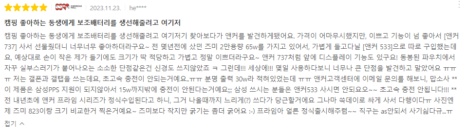 하지만 올해 여름 노들섬 서울 비 댄스 페스티벌에 샤오미 보조배터리를 가져가 사용해본 결과, 충전속도가 너무 느려서 중간 중간 폰을 사용하며 충전하면 배터리가 거의 충전되지 않는다는 사실을 깨닫고 새로운 보조배터리를 찾게 되었습니다.