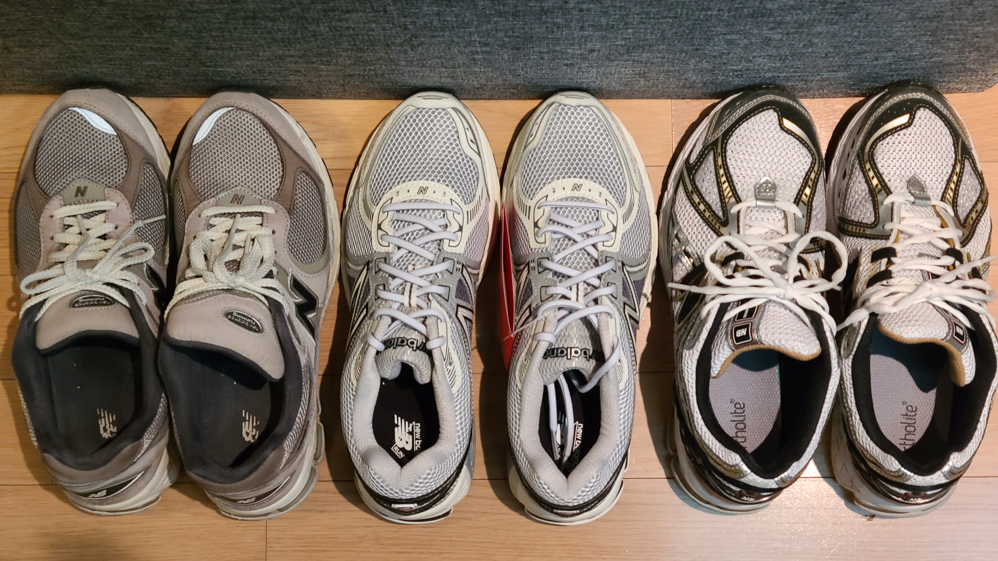 좌로부터 2002, 860v2, 1906입니다. 860 이 새 제품이긴 하지만 발볼부분 넓이와 발목 부분 쿠셔닝에 차이가 확연히 느껴집니다.