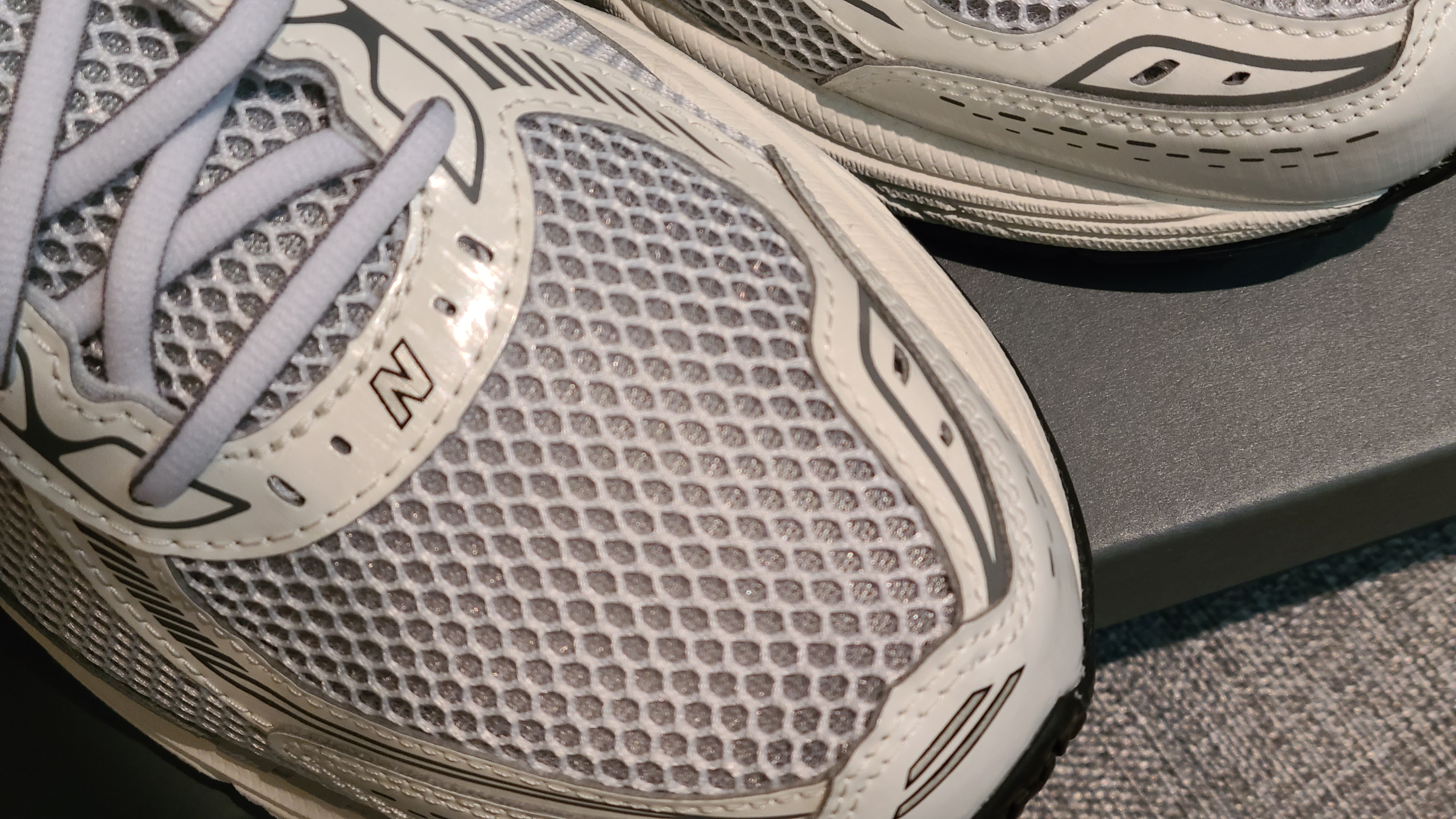 다크 그레이 컬러는 신발 옆면 N 로고가 있는 패널의 컬러를 의미하는 것 같습니다.