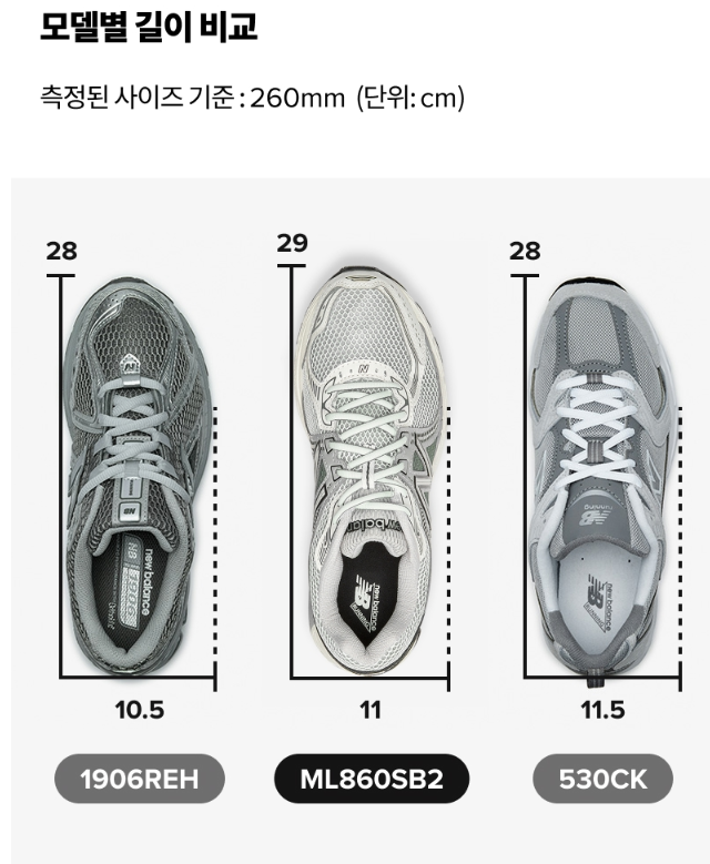 저는 정사이즈 275 신발을 신고, 기존에 신고 있는 2002, 1906, 이번에 구매한 860V2모두 반업한 280mm를 선택했습니다.