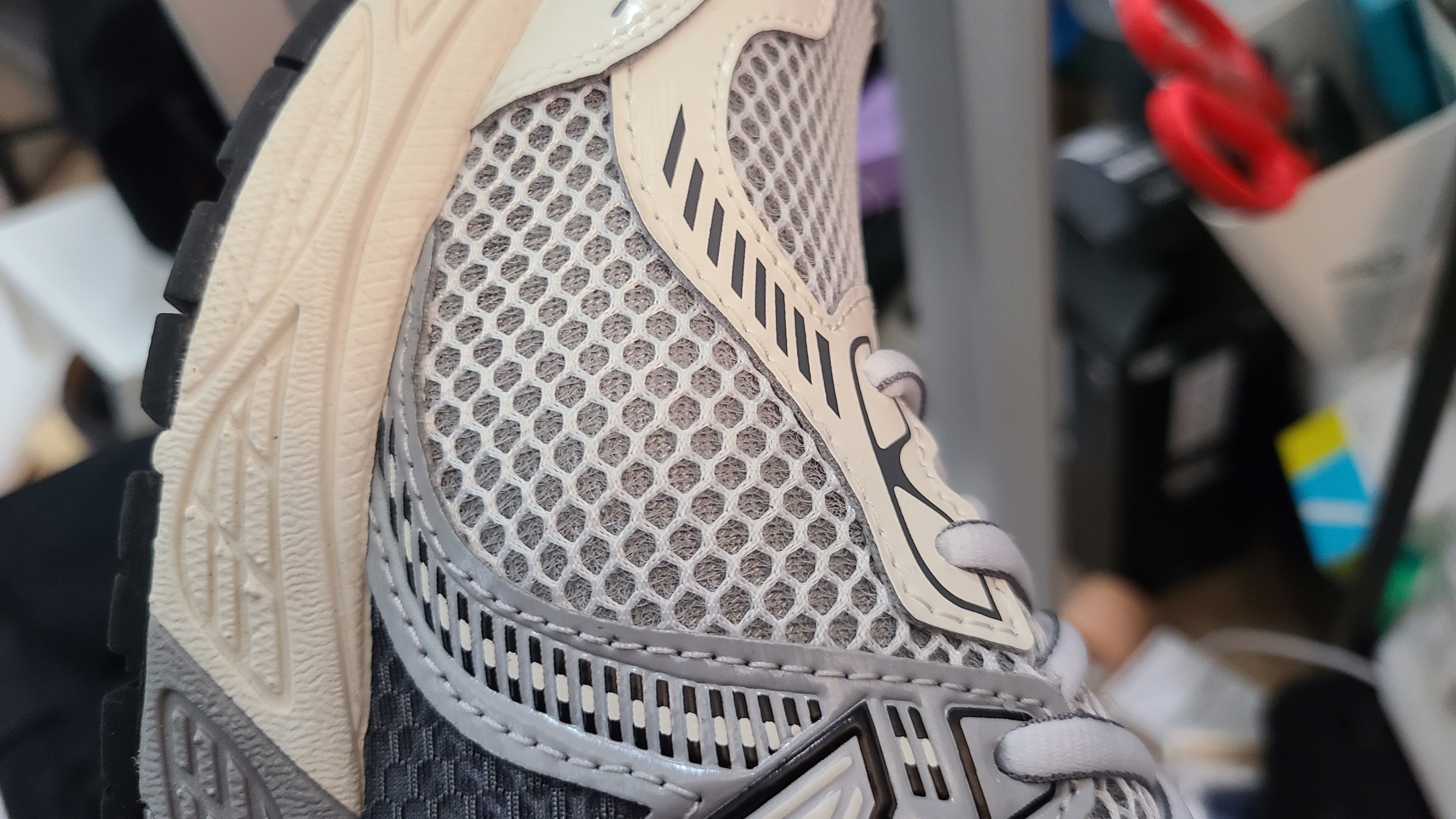옆면에 얇고 큰 N로고, 어퍼가 전체적으로 매쉬로 되어 있습니다.