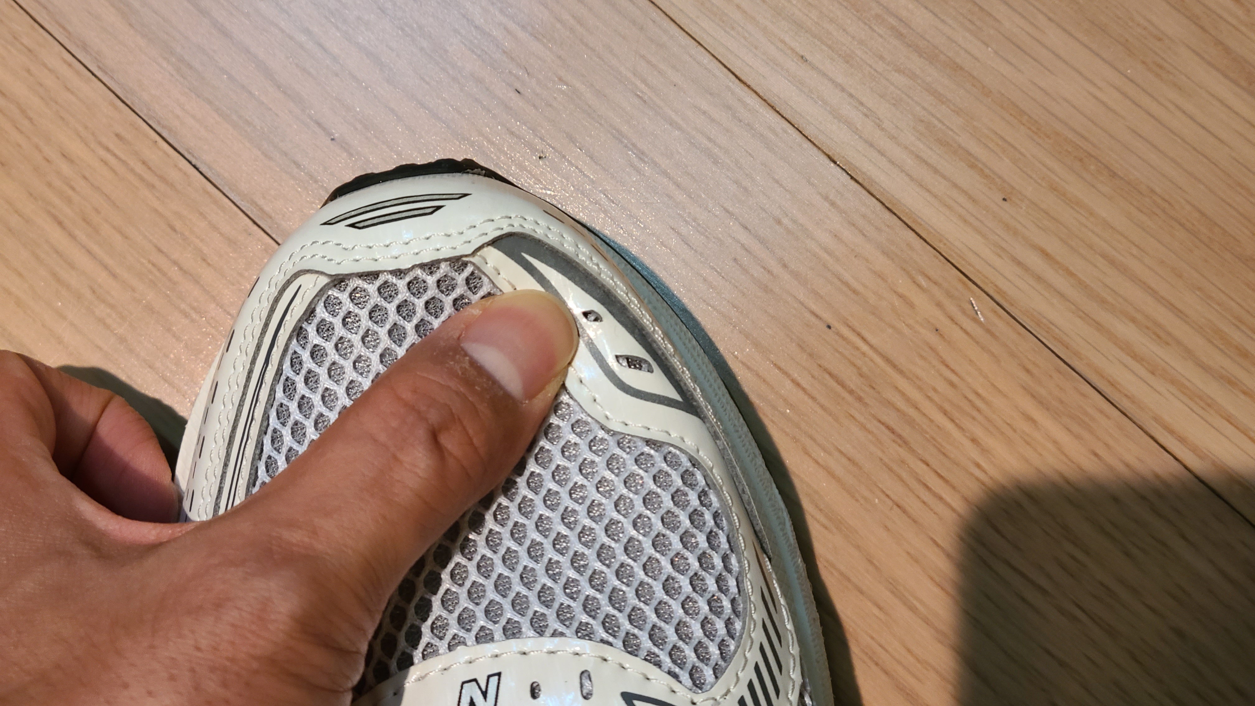 뱀프 부분은 넓은 매쉬로 되어 있고 라이닝은 약간 유광 느낌인 하얀색입니다.