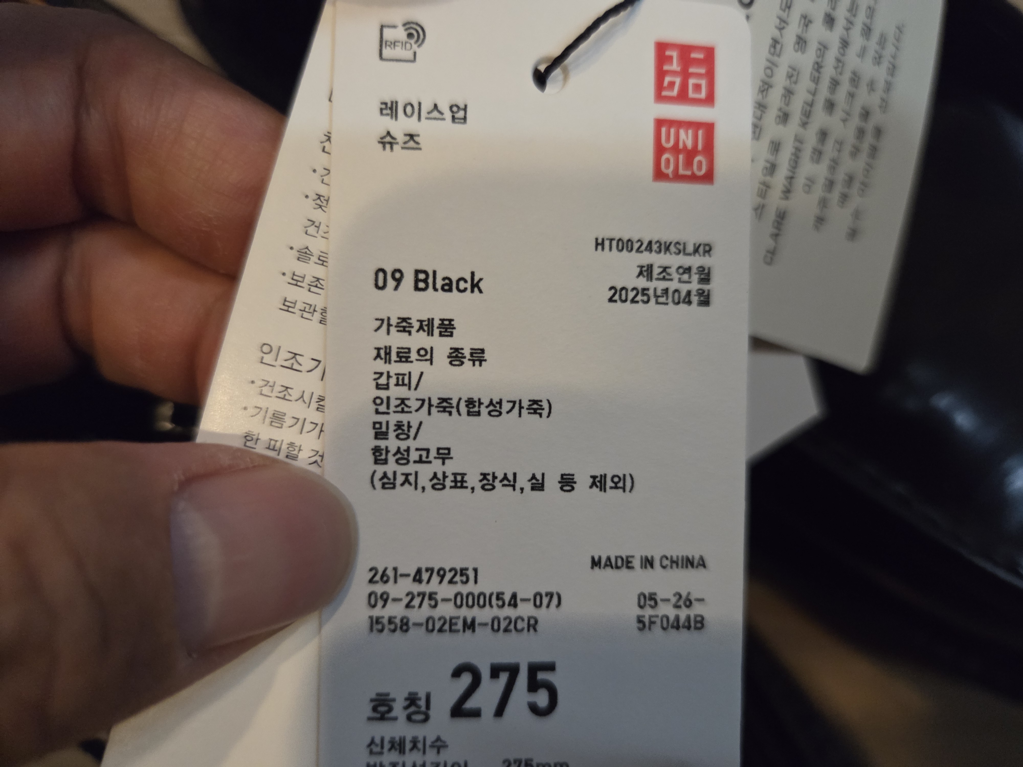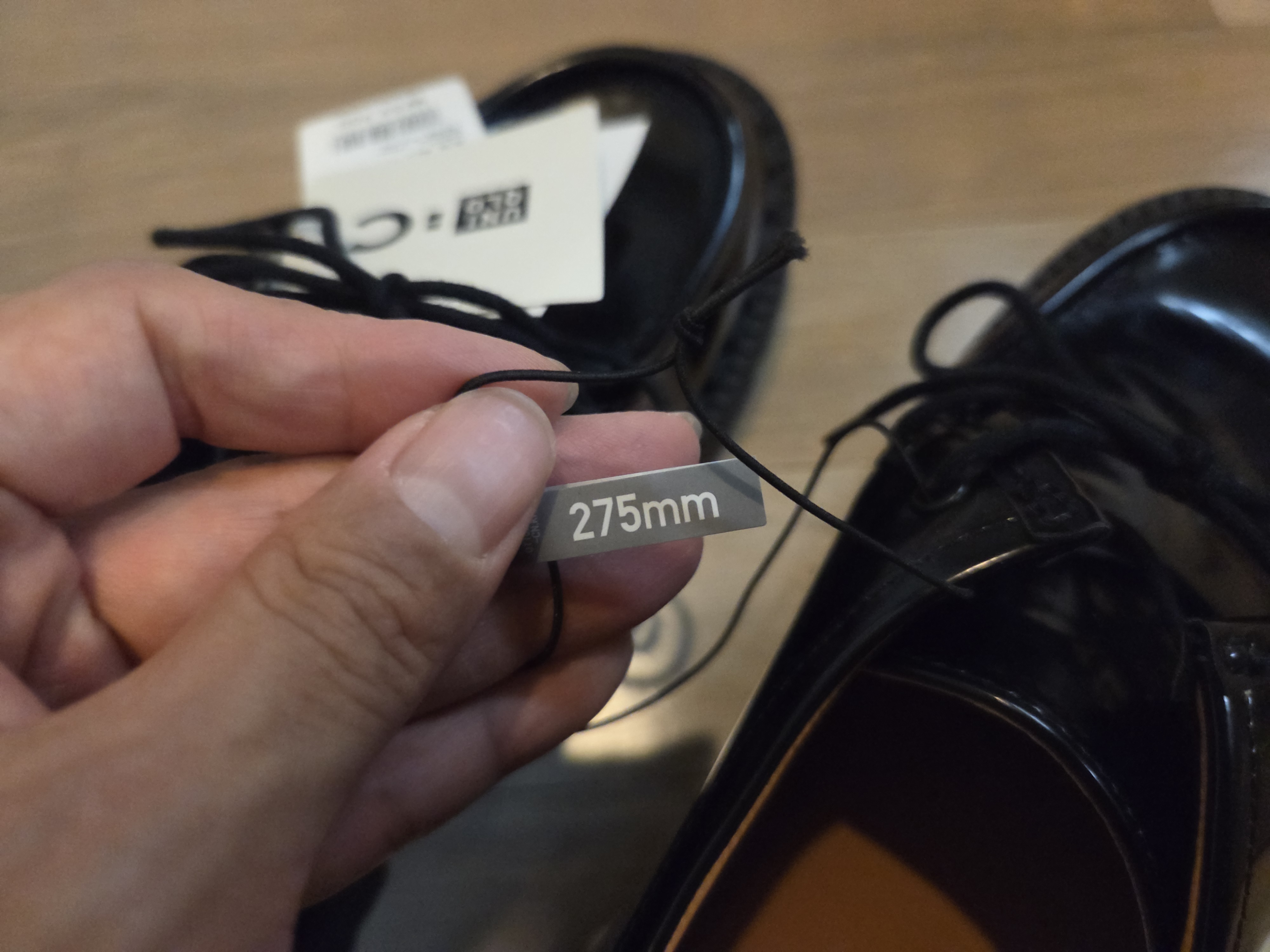 혹시나 구두니까 작게 신어야 할 수도 있어서 정사이즈인 275, 반사이즈 다운인 270을 모두 구입했습니다.